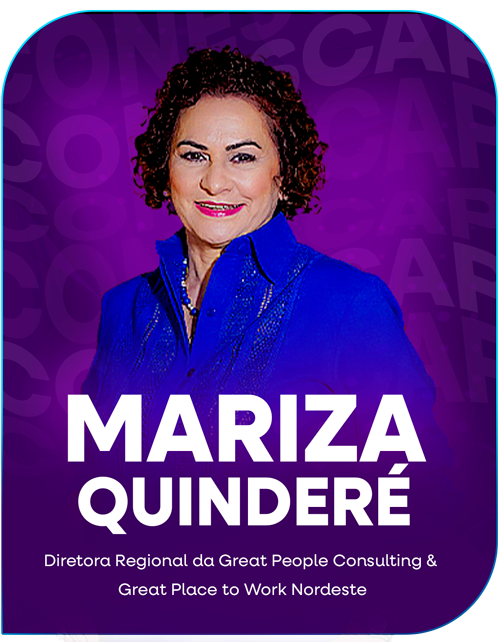 Mariza Quinderé – Diretora Regional da Great People Consulting & Great Place to Work | Nordeste. Pós-graduada em Gestão de Negócios pela Faculdade Christus e MBA Executivo pelo Coppead/UFRJ. Mentora e coach com formações reconhecidas no Brasil, com ampla trajetória em empresas de Telecom, Tecnologia e Comunicação. Integra um ecossistema de marcas com propósito comum: colocar as pessoas no centro das estratégias organizacionais.